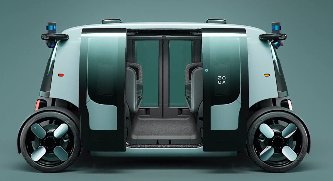 それが、アマゾン傘下のズークス(ZOOX)です。ズークスの自動運転車が他と大きく異なる点は、運転席にハンドルが無いという事です。多くの自動運転車には今でもハンドルが付いている。もちろん、自動運転で先行しているウェイモも使わないけどハンドルが付いています。