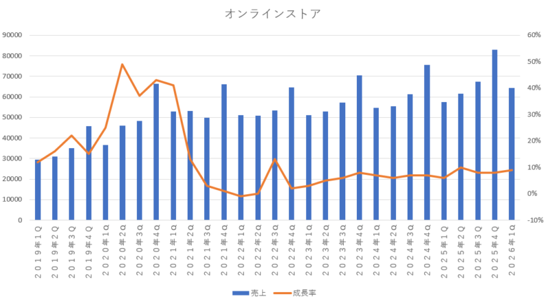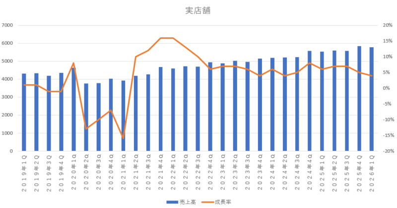 実店舗の伸び率は 4%増加となっていて、前期よりも成長性は落ち込んでいますが、もともと成長性は高くなくない事業でありかつ売上高も大きくないので、とりあえずはプラス成長を維持してくれていればいいなと思います。