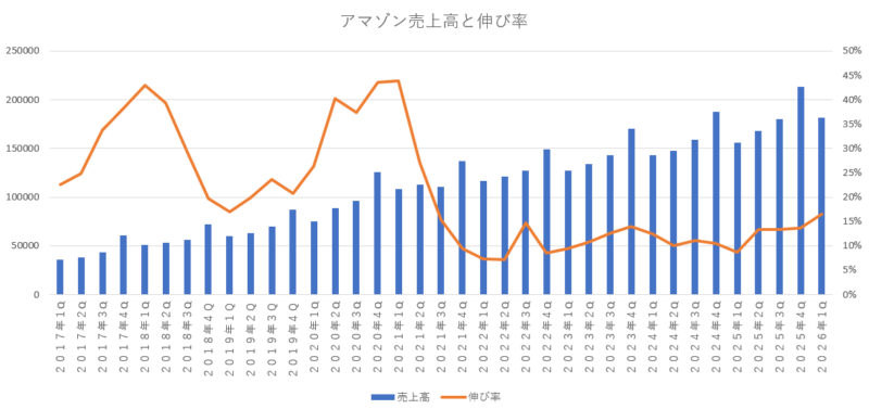 前期の決算の際にアマゾン自身が想定していた数値に対しては、売上も営業利益も共にアマゾン自身が想定していた上限の水準をはるかに上回る結果となっていたので、想定以上に力強い決算内容だったと言えると思います。