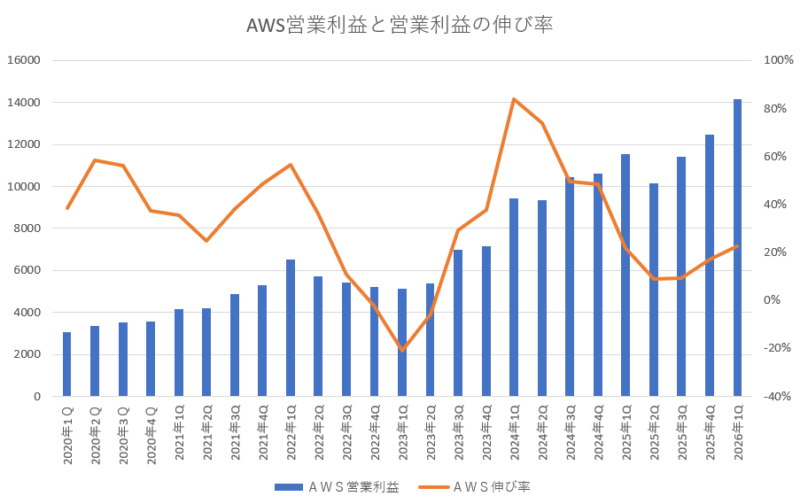AWSの営業利益と営業利益の伸び率