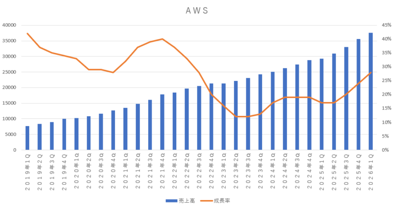 今回の決算内容は、かなり良かったと思います。今期の売上も営業利益も問題なく、市場予想をしっかりと上回る結果となっていたし、次期ガイダンスも充分満足できる水準だったと思います。アマゾンの心臓部分である AWS(クラウド事業)についても、AI需要の拡大に乗って売上成長が大きく伸びており、再び成長軌道に乗ってきたと思います。