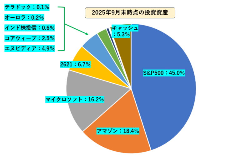 ドル円相場を確認してみても、年初の頃は 1ドル=157.74円で、現在(2025年9月27日)は 1ドル=149.54円なので、年初の頃よりも為替レートで 5.2%円高ドル安になっているにも関わらず私の投資資産は年初よりも 6.0%も上昇しているのは上出来だと思います。
