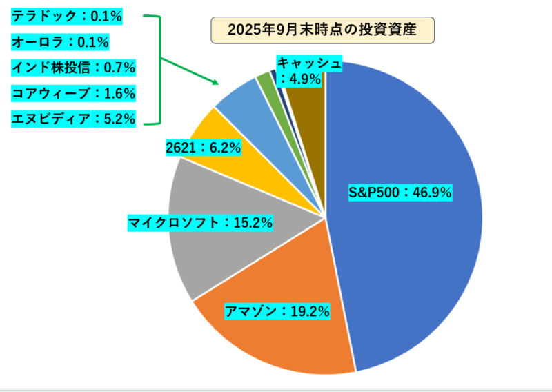 残っているキャッシュで、インド株投資信託とS&P500投資信託などを少しずつ時間を分けながら購入していこうと思っているので、来年にはどこかのタイミングで買い増ししていると思います。それと、パフォーマンスの悪い個別株などは違う銘柄に入れ替えているかもしれませんね。