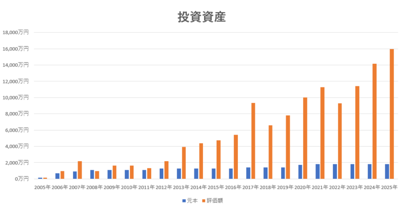では、2005年~2025年までの私の投資結果です。