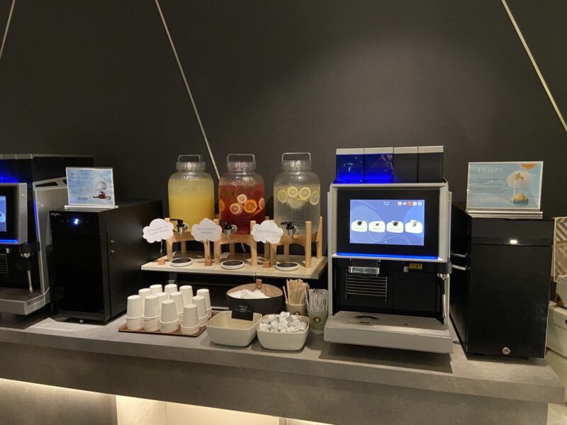このホテルは、18時~21時まで21階のOMOダイニングでローカルリズムナイト 「FUWAFUWA Night Trip」というイベントをやっていて、宿泊者は無料でジュースやコーヒーとお菓子を食べながら夜景を見て寛ぐことが出来るスペースを開放してくれているんだ。綿菓子も無料で作らせてもらえるよ。