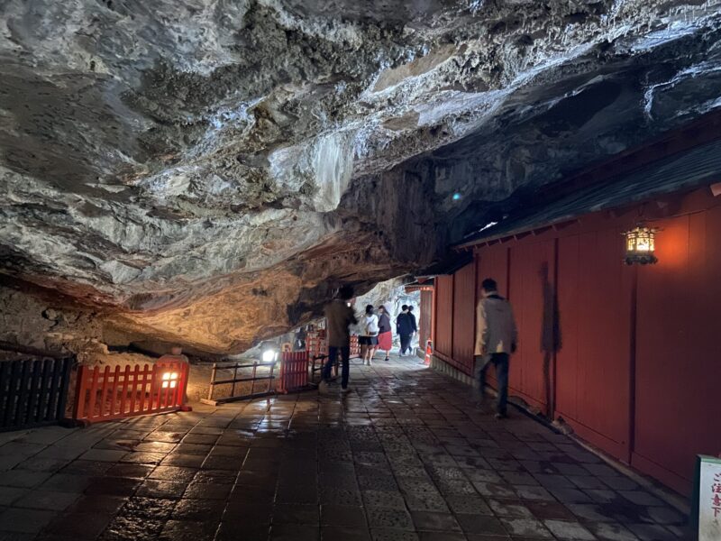 岩盤の中に拝殿があるよ