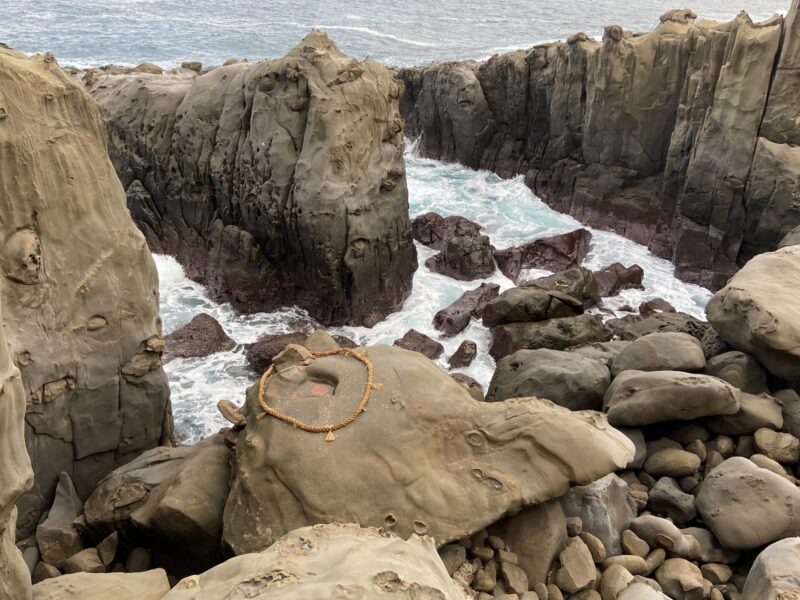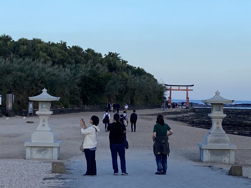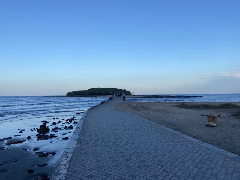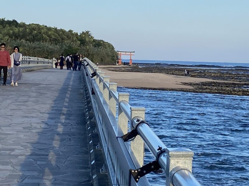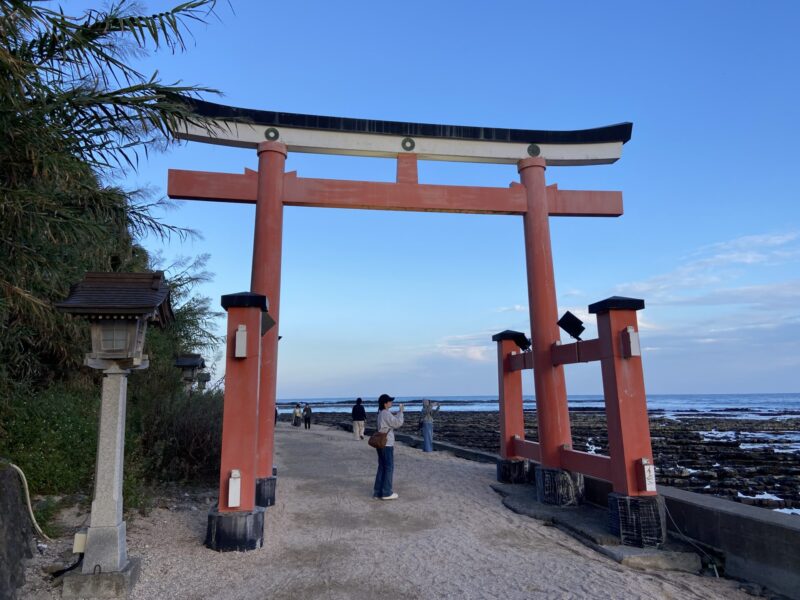 次は、青島神社に行ってみたよ。青島神社は離れ小島に建っている神社で橋を渡って離れ小島の神社へと向かうんだ。海の神様である豊玉姫を祀っている神社で、鬼の洗濯板なども有名みたいだね。時期によってはイベントを開催していて夜間のライトアップなどもあるから幻想的な夜の風景を楽しめる時もあるよ。