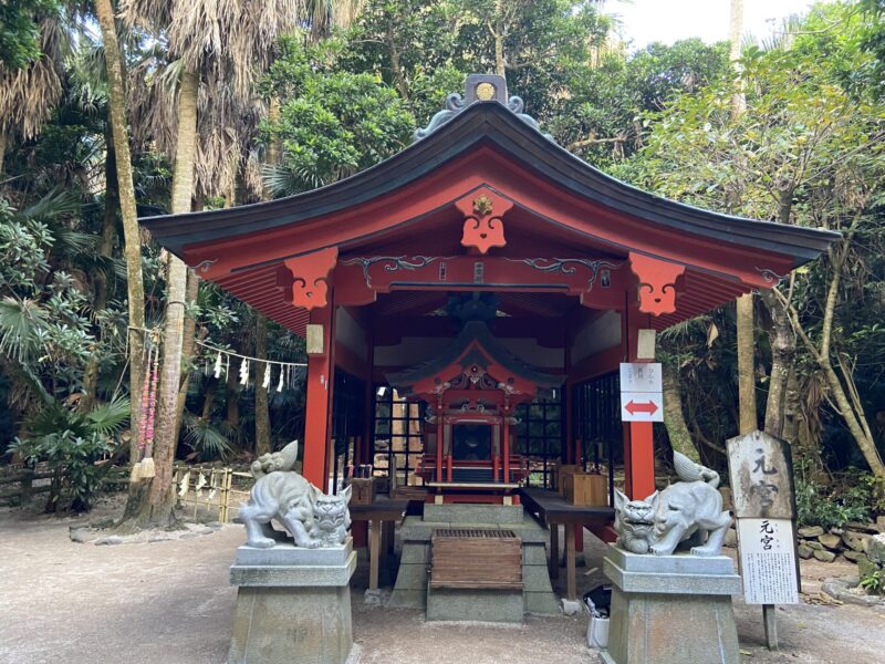 亜熱帯の森を抜けていくと元宮が見えてくるよ