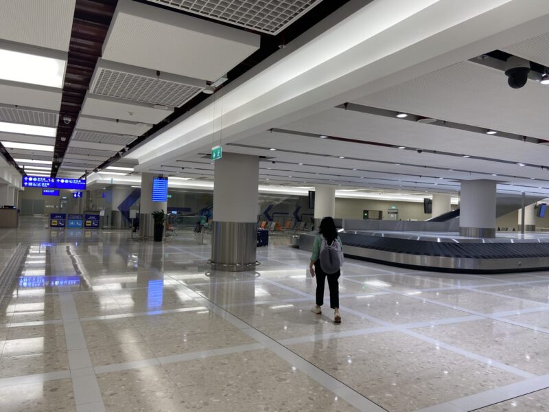 ダイレクトバスを待つ乗り場はこんな感じでターンテーブルがあって、そこに荷物(スーツケース)が届いているはずなんだけど、俺のスーツケースが無い・・・。