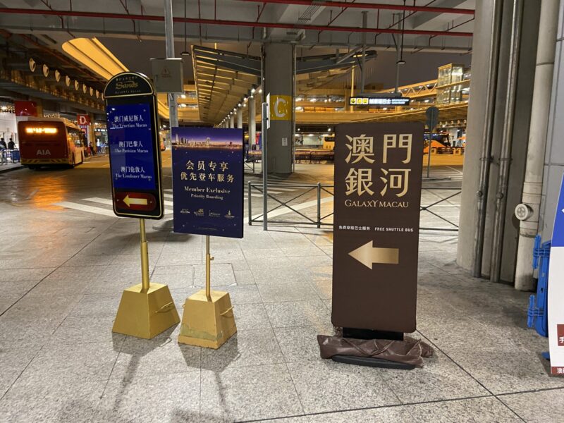 さて、楽勝でマカオパスを手に入れたんだけど、ここから乗るバスはカジノが運営している無料のバスに乗ってカジノまで行けるんだ。俺が泊まるブロードウェイマカオは、ギャラクシーマカオ(澳門銀河)という巨大IR施設(複合カジノ施設)の中にあるので、ギャラクシーマカオのバスの乗っていけば無料でギャラクシーマカオまで連れて行ってくれるんだ。