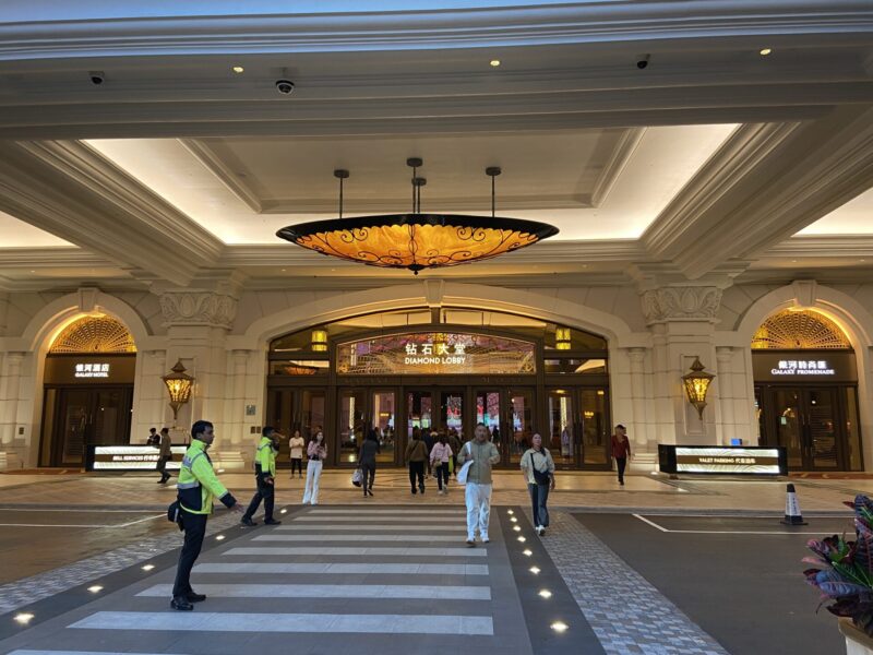 港珠澳大橋澳門口岸(国境ターミナル)から約 20分ほど走ると目的地のギャラクシーマカオに到着。自分でスーツケースをバスから取り出して、いよいよギャラクシーマカオに足を踏み入れる。