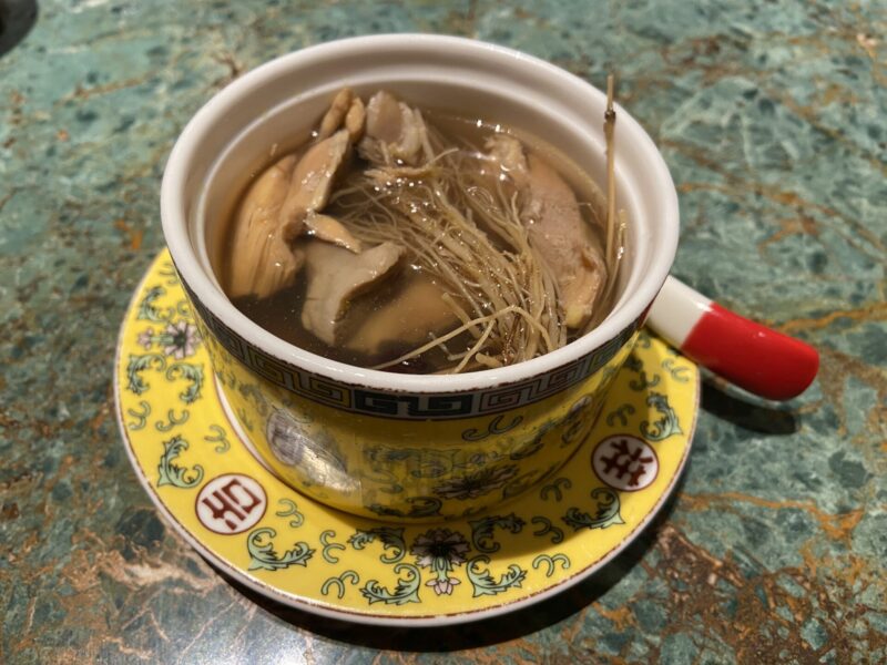 漢方スープは鶏肉やつぶ貝が入っているのだが、これも非常に柔らかくて美味い。つぶ貝は弾力もありつつ、柔らかさもあり、しっかりと煮込まれている感じ。提供されるのも時間が掛かっていて30分ぐらい待ったと思う。漢方スープの味自体は、美味しいというよりも健康に良さそうといった感じだな。