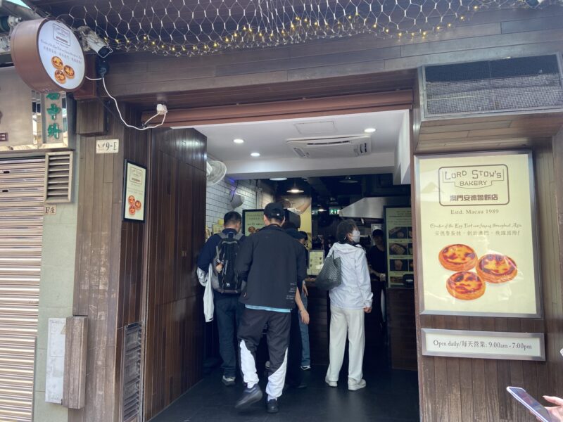 まず向かったのは、ロード・ストーズ・ベーカリー(Lord Stow’s Bakery・澳門安德魯餅店)。エッグタルトの超有名店で、マカオ2大エッグタルト有名店の1つ。本店は、マカオ南部のコロアネ地区にあるのだが、あまりに有名になったため、現在支店がいくつかあり、ここ官也街のほかにも、ベネチアンやロンドナーにも支店がある。