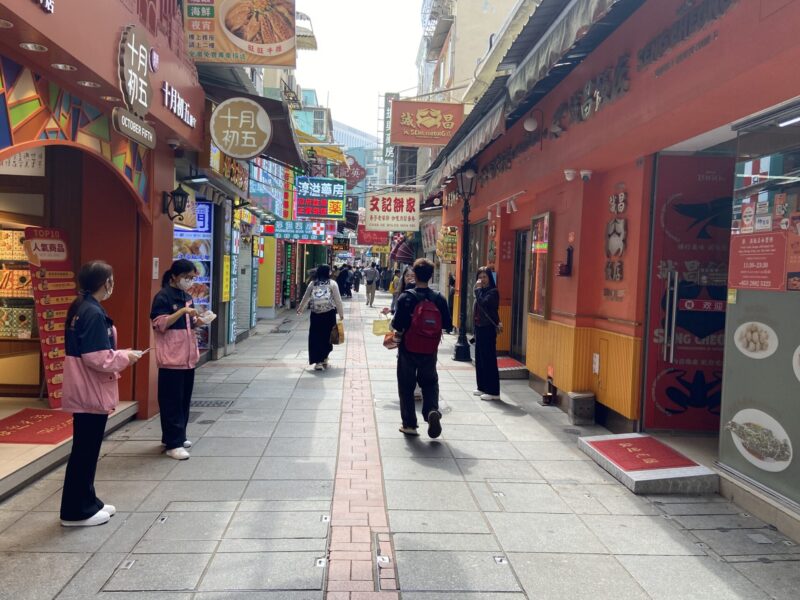 どこかのお店に入って、お昼ご飯でも食べようかと思ったが、エッグタルトも食べたいし、ホルモンの有名店にも行きたいし、などと思っていたので、それだったらお昼ご飯を食べるよりも食べ歩きをした方がいいかなという事で、目当てのお店を探しに行く事に。