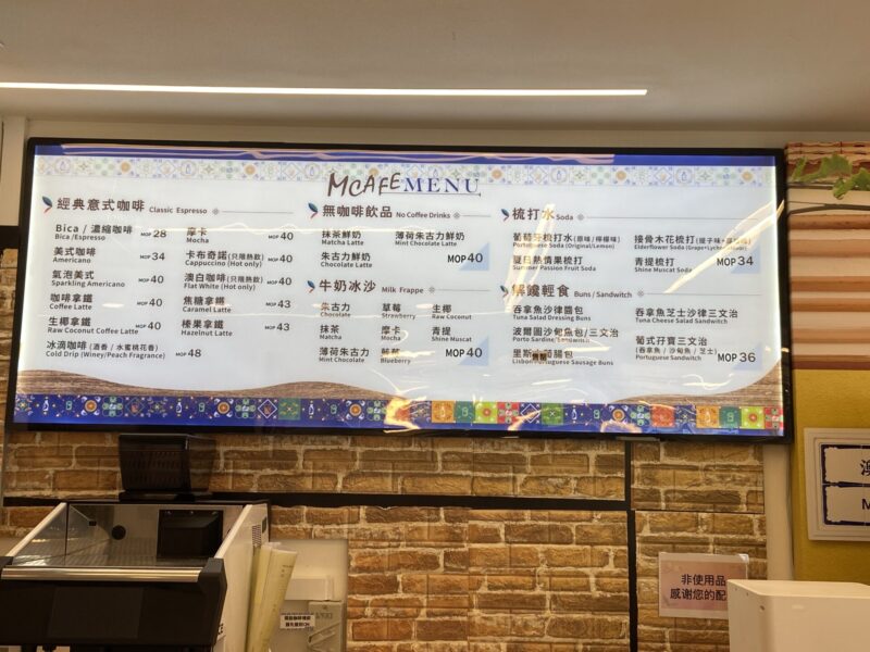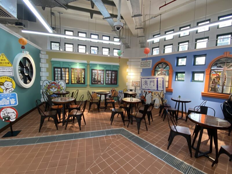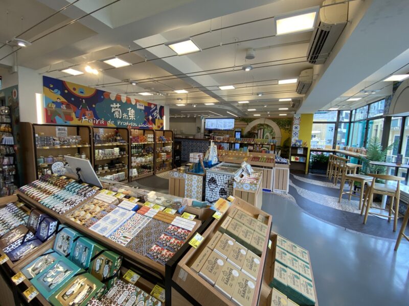 2フロア(3階)の「澳品薈葡市集」は、定番のお菓子などのお土産もあるし、キーホルダーやマグカップなどもあるので、とても良かったよ。それに、カフェも併設しているんだ。ここは穴場みたいだったから、あまり人もいないし、ゆっくりと休憩できるんじゃないかな。窓から聖ドミニコ教会の周辺を眺めながらのんびりとカフェタイムを楽しむのもいいかもしれないね。