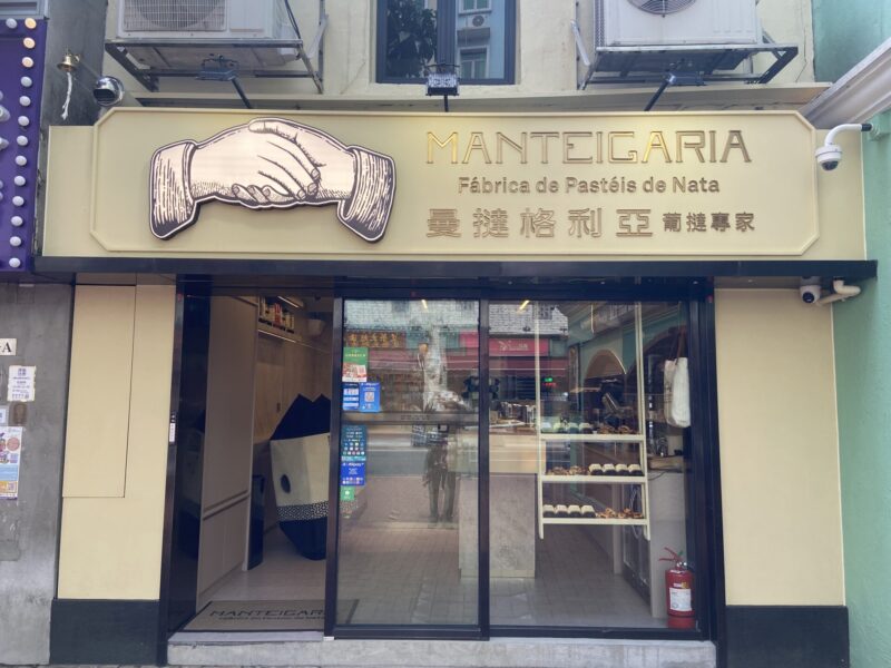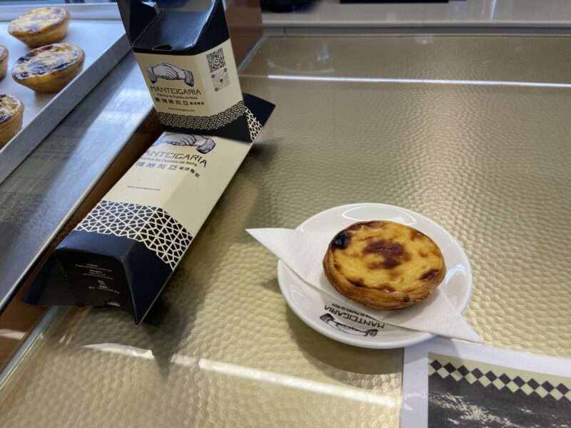 タンブラーを買って、氹仔街市を出た後は、またまたエッグタルトを食べにいってみた。次にいったお店は、「曼撻格利亞(Manteigaria)」というところ。エッグタルトの本場であるポルトガルの有名エッグタルト店が満を持してマカオに進出。官也街以外にも、旧市街地(グランドリスボアやマーガレット・カフェ・エ・ナタの近く)にもお店がある。