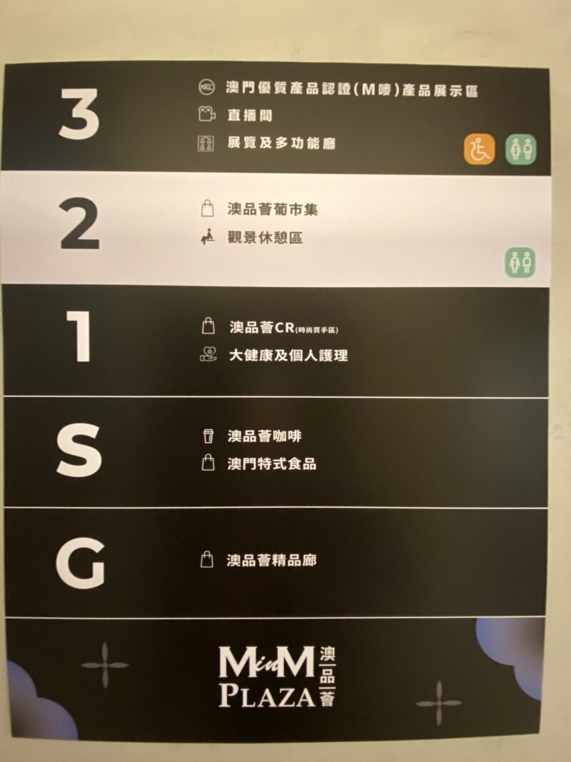 ちなみに、マカオでのフロアの表記は日本とは少し違うんだ。Gフロアは1階、Sフロアは中1階、1フロアは2階、2フロアは3階という感じなんだ。日本よりも1階低い(例えば、3階は2フロア)という風に覚えておくといいかな。