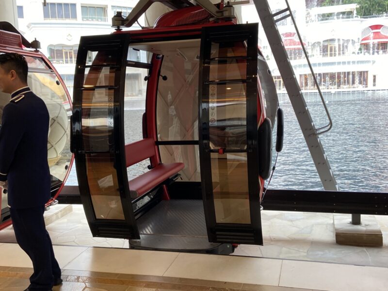 ウィンパレスのゴンドラの基本は、駅からホテルまでの半周だけ乗れるのだけど、空いていると1周(駅→ホテル→駅)まで乗っていてもいいみたい。この日は平日で、それほど混んでいなかった(10分待ちぐらい)だったので、ホテルに到着しても、そのまま乗っていて良かったみたいで1周する事が出来たんだ。