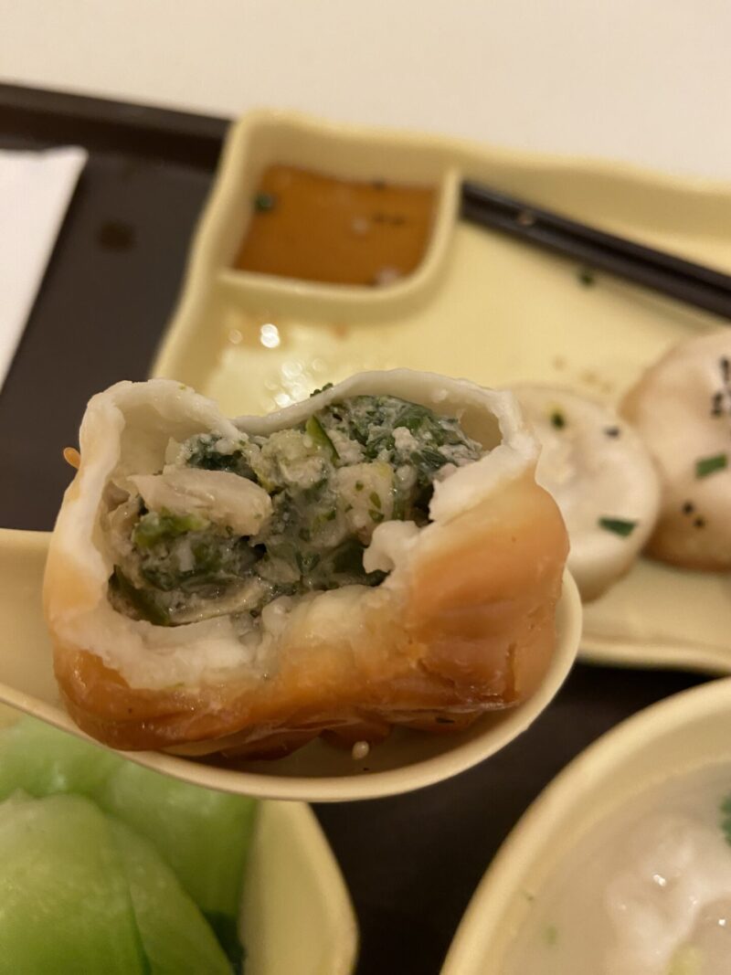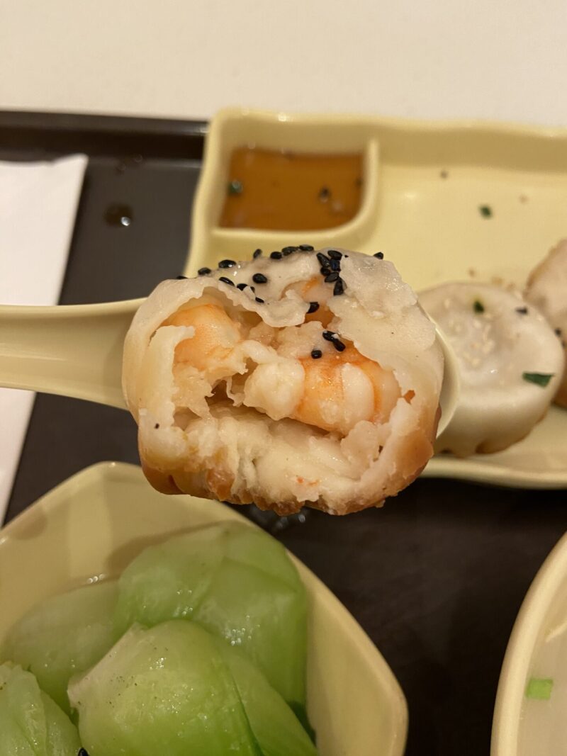 でも、やはり量が多かった。セットメニューは食べきれないぐらい多いかも。焼き小籠包3種類×2個(合計6個)と雲吞麵と小松菜の蒸したのがあるけど、そもそも焼き小籠包6個の時点でお腹いっぱいになりそう。欲張らない方がいいな。焼き小籠包は、豚肉・海老・野菜の3種類だったけど、豚肉と海老は美味かったが、野菜はボチボチだったかな。