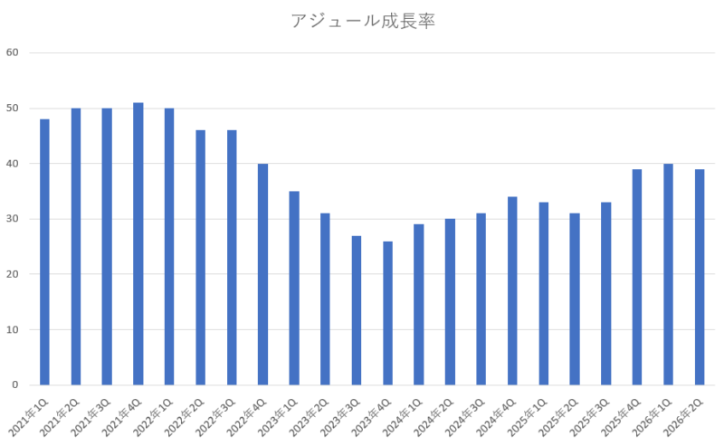 売上は、二桁成長を維持しており、順調です。数年前の2023年度は売上成長率が一桁台に落ち込んでいたのですが、その後はしっかりと回復しており、今回も順調に二桁成長となっていました。この調子を維持して欲しいですよね。